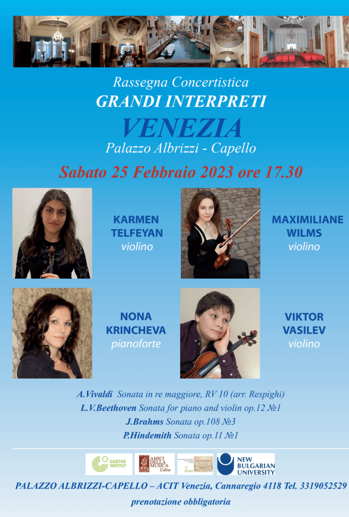 In Kooperation mit der Neuen Bulgarischen Universität Sofia und Amici Della Musica Udine. Ticketreservierung : Tel: 3319052529